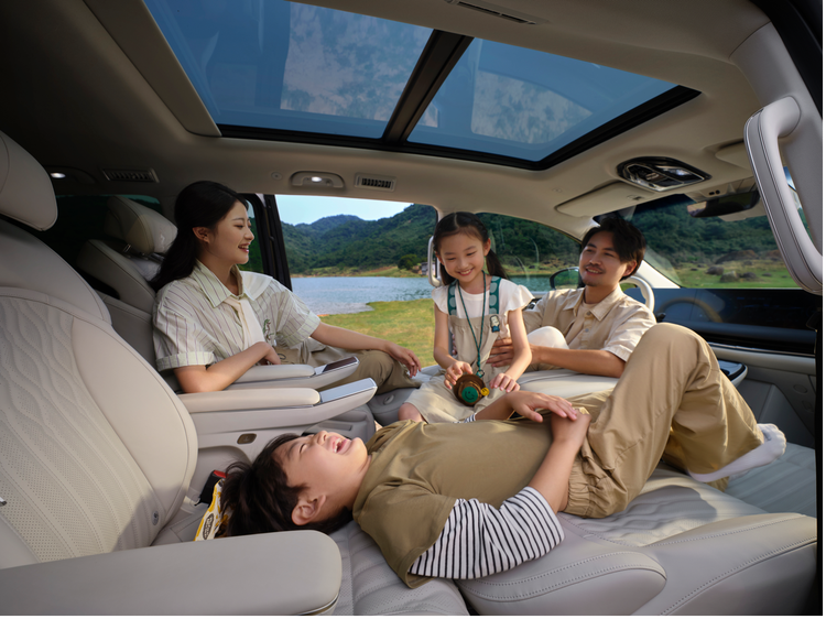 匠心设计,打造舒适空间。星海V9车身采用纯平前中地板及下沉式后地板结构,座椅灵活百变,三排可完全折叠收纳,实现真正的“大平层”畅玩空间;有效纵深3595mm,获得同级最高85.2%车内最大空间利用率。同时拥有双侧电动滑门、1500mm*870mm超广角全景天窗,带给用户尊贵的上车体验和乘坐舒适度。