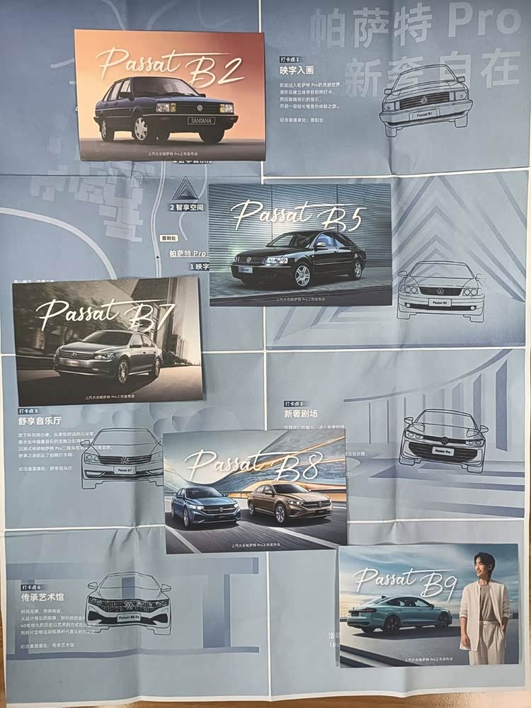 这套明信片共有5张,分别是帕萨特B2、B5、B7、B8,还有最近上市的帕萨特B9。