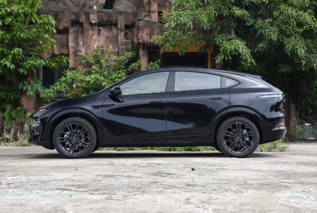 侧面溜背式的车身造型动感流畅,隐藏式门把手、无框车门和低风阻轮毂等设计,都在为降低风阻系数和提升运动感做出贡献。