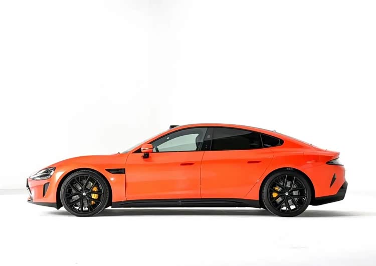 三点要点,首先是车门没有边框;其次,它的外表带有橙色的涂装效果;其三,车辆内部配有黑白两色的双拼装饰。它们很有可能分别对应小米SU7中的“熔岩橙”与“银河灰”这两款”。