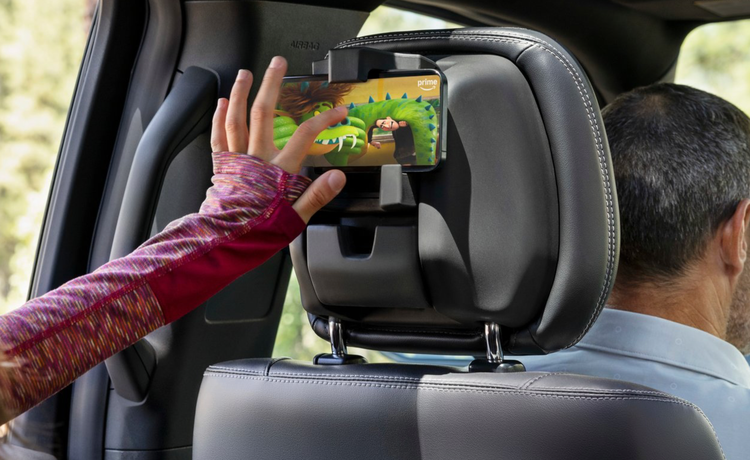 当然,在车机系统方面,我们都不细说了。该有的,应该都会有,我觉得很有意思的是第二排头枕给到的一个夹手机的卡槽,这个设计还是蛮有新意。