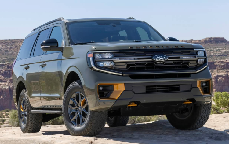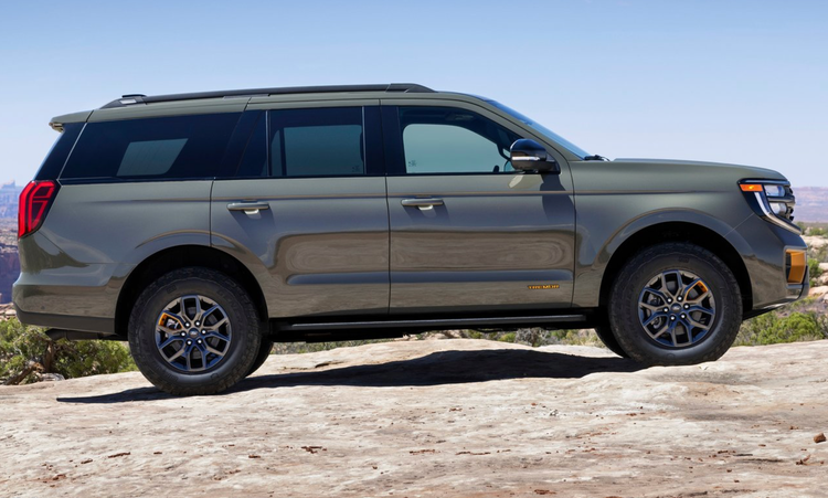 它的具体配置可以参考我们国内的探险者昆仑巅峰版。福特Expedition Tremor车型和其它车型不一样的点在于它增加了越野装备,以进行更崎岖路况的行驶!比如说,它的离地间隙来到了10.6英寸,也就是26.924 厘米!并且它采用了33英寸的General Grabber全地形轮胎。