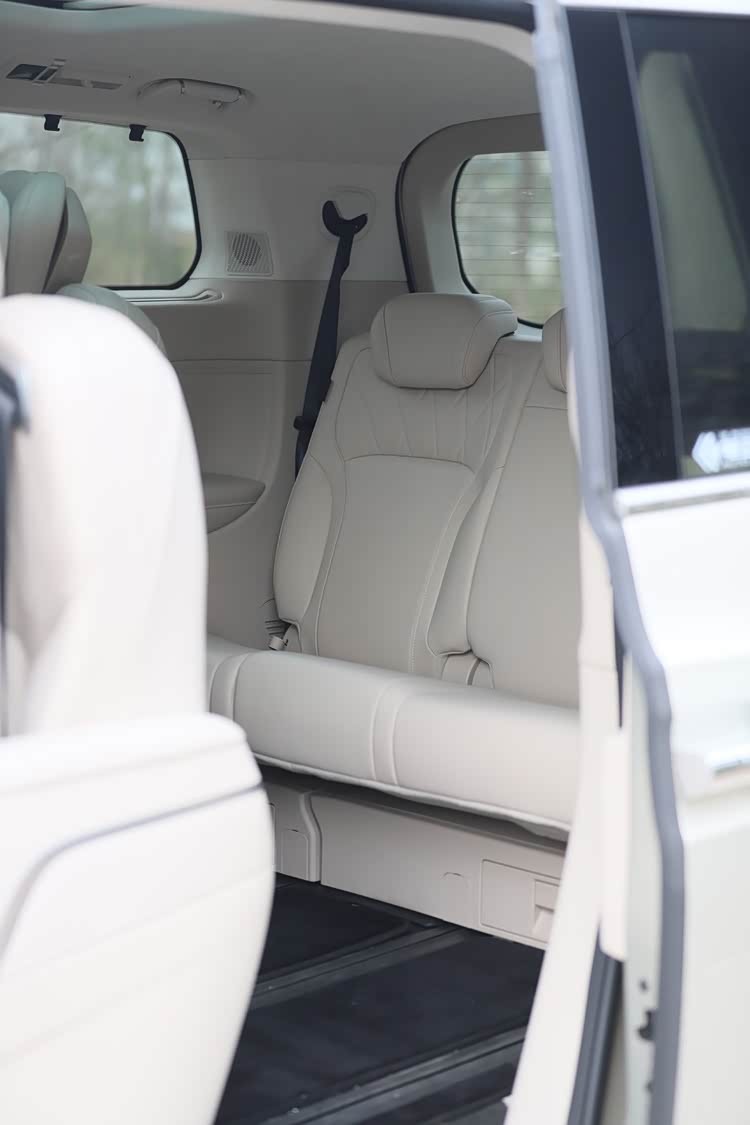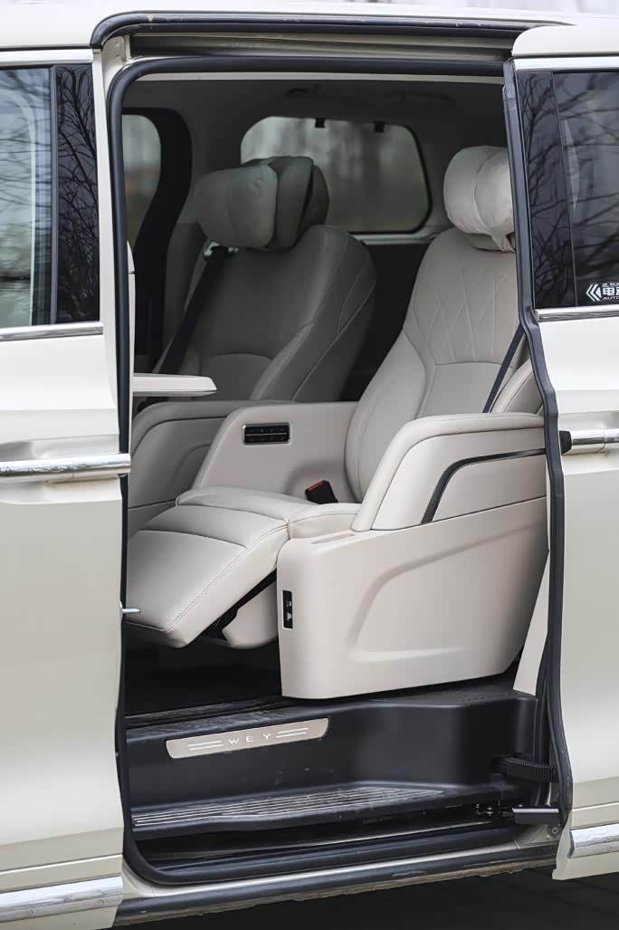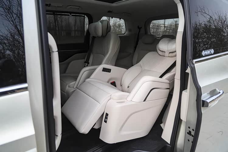 MPV最大的享受在于第二排座椅,采用悬浮式零重力设计,官方声称符合NASA定义的真正零重力座椅标准。与其他车型不同,这套座椅更像家中航空舱的设计,能够自动调节至零重力状态。躯干与腿部夹角为127°,大腿与小腿夹角为132°,在这个角度下,乘坐感受最为舒适。操作十分简便,只需按动扶手上的相应按键即可。座椅会自动缓慢调整至零重力状态,乘坐感觉非常舒适。再加上加热、通风、按摩等功能,使得上班的中午,也让人想在车内小憩片刻。