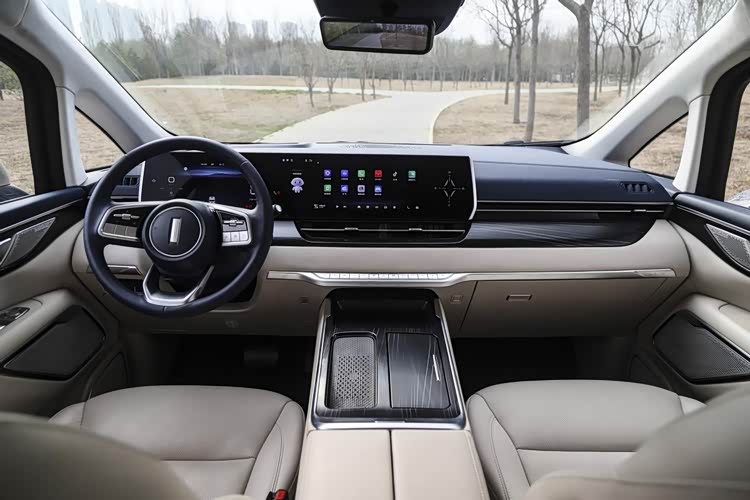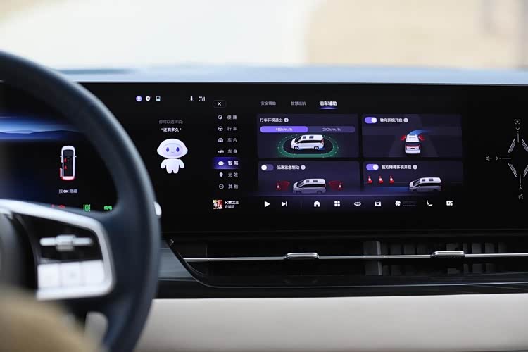 车内采用大量皮质包裹,双色搭配,用以提升了档次。方向盘略显大号,两侧按键控制标识清晰。27英寸的大联屏,4K分辨率,搭载高通骁龙8155芯片的Coffee OS智能车机系统,UI设计简约,显示清晰度和操作流畅度都令人满意。9英寸的流媒体后视镜可调节亮度和高度,对停车有很大帮助。内部系统支持QQ音乐、在线电台、有声读物、在线视频、语音交互以及车联网等功能。Harman Kardon音响系统为其增添不少色彩,音质出色,特别适合欣赏古典音乐。