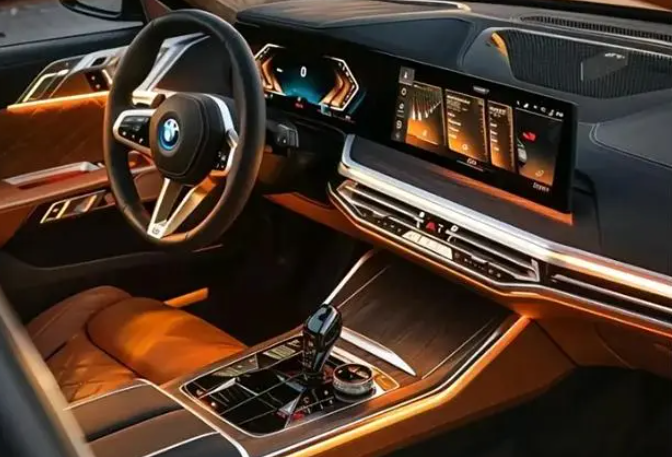 内饰方面,新宝马5系在内饰设计上与7系列有很大的相似之处。显示屏包括12.3寸的仪表板,14.9寸的中心显示器,下方配备具有水晶质感的环抱式交互光带。方向盘的造型更加动感,同时座椅材料以及门内装饰也有了很大的改进。值得一提的是,宝马7系所搭载的悬浮式巨幕也被下放到了5系车型上,配备31英寸超宽8K分辨率的悬浮式显示屏与Bowers & Wilkins钻石环绕式音响系统相结合,就像是“私人影院”一样,给人身临其境的感受。