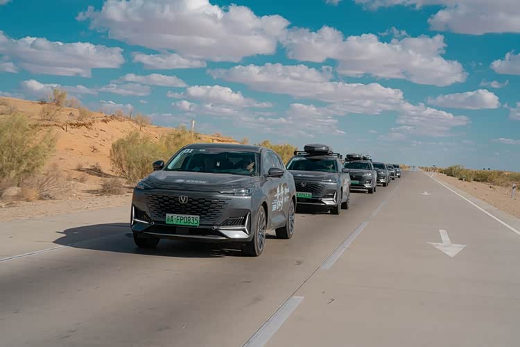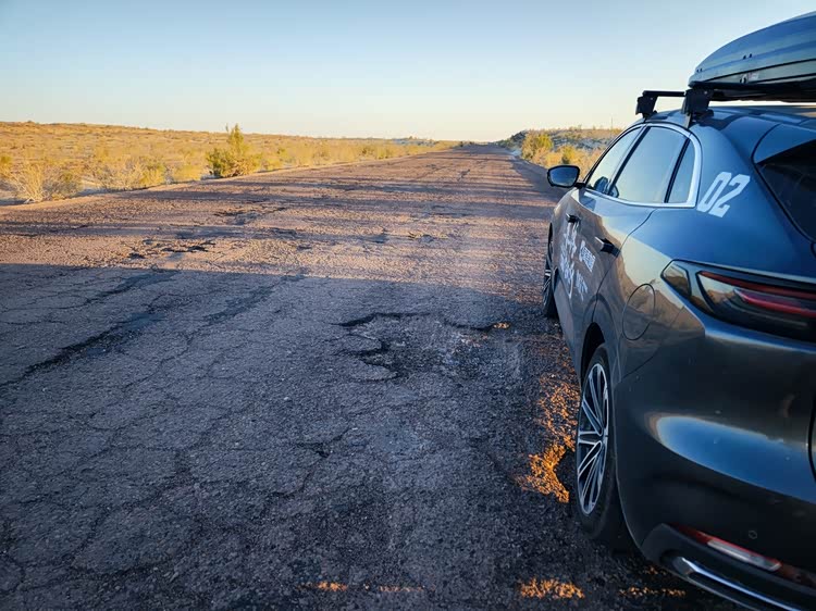 进入乌兹别克斯坦高速公路,道路两侧是一眼望不到镜头的沙漠路段。 这条高速路是中国修建的,道路非常平整。开启深蓝S7智能辅助驾驶功能,便可以享小憩片刻。