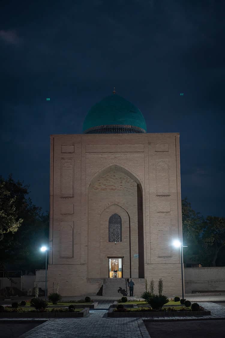古尔·埃米尔陵墓(Gur-E-Amir Mausoleum)里安息着帖木儿大帝与他的子孙,其中一位孙子便是在《包容万千的古城布哈拉》一文中提到的乌鲁别克。帖木儿原本在故乡沙赫里萨布兹已为自己建造了一座陵墓,而这座撒马尔罕王陵是为他死去的孙子(王位继承者)穆罕默德苏丹(Muhammad Sultan)而建的。穆罕默德在1403年随帖木儿往奥斯曼帝国征战途中去世,世事难料,两年后,帖木儿自己则在往明朝征战途中染病身亡。帖木儿遗体在运回故乡时,大雪封路无法前往,只能转而撒马尔罕,与穆罕默德葬在了一起。1409年,乌鲁别克开始统治撒马尔罕,他聘请了伊朗伊斯法罕的建筑师马哈穆德(Muhammad ibn Mahmud)正式将这座陵墓改建为帖木儿王朝的家族皇陵。