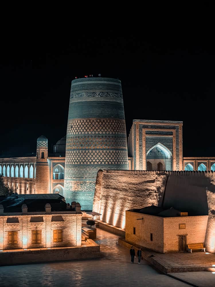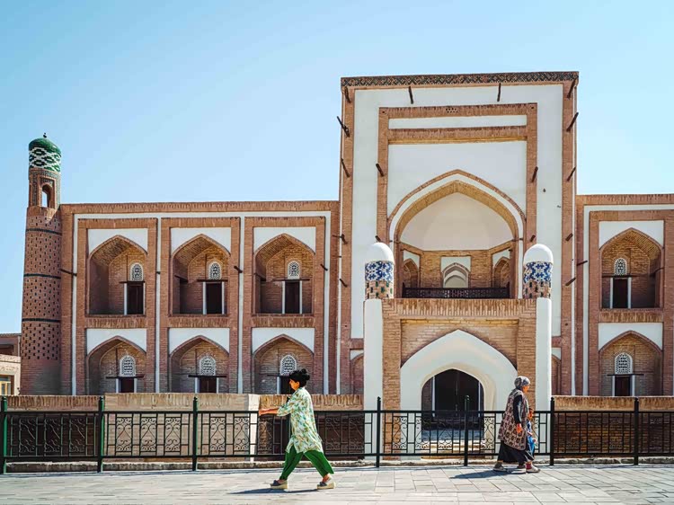 这个粗粗壮壮的圆柱体屹立在主干道旁,1851年,当时的希瓦可汗着手建造它时,初衷是要能遥望到400公里外的布哈拉,计划高度超过80米。但1855年可汗意外坠亡,宣礼塔才建到29米,但人走塔凉,工程就此烂尾,就成了你现在看到的敦实模样。