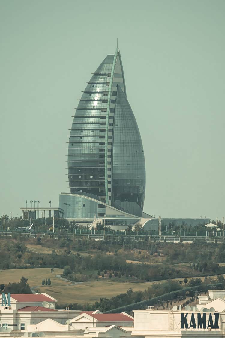 阿什哈巴德新建筑都是由法国建筑师设计、土耳其人承建。宽阔整洁的大街、拔地而起的现代化建筑,向我们展示出丝路古道如今的勃勃生机。