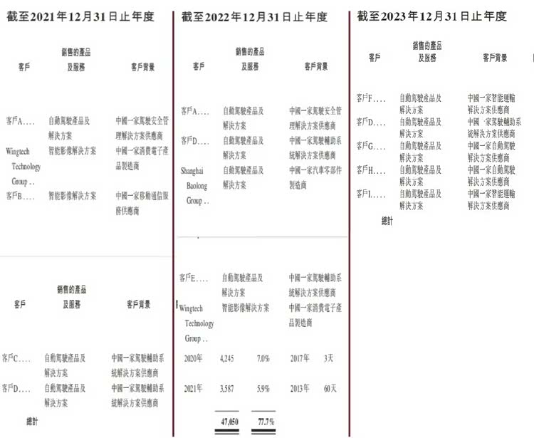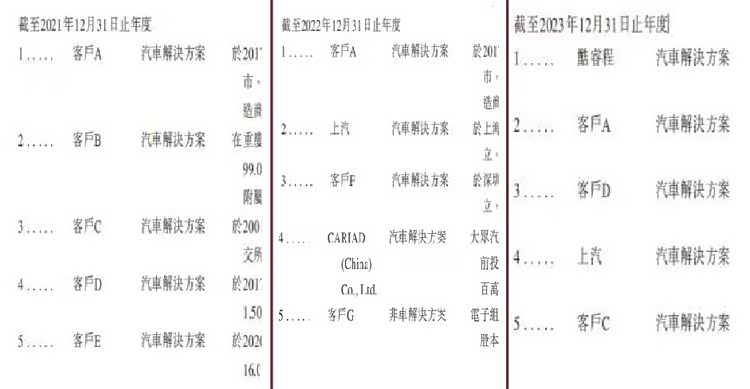 通过黑芝麻智能的招股书,我们能够清楚地看到,短短三年间,黑芝麻的前五大客户变更得很频繁,地平线的客户群则相对稳定。