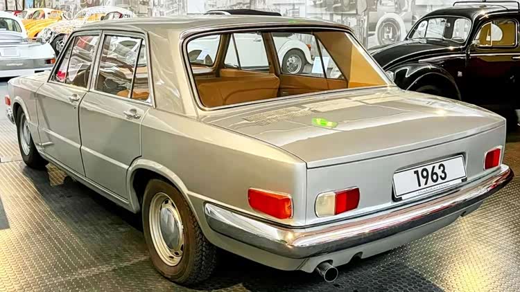 看到它的第一眼,很多汽车爱好者会将其认为是大众Tatra 613,那是一款1974年至1996年期间在捷克斯洛伐克生产,拥有后置发动机的豪华车型。不过,仔细推敲你会发现,二者的轮廓略有不同,并且展厅里这辆车还拥有与初代保时捷911(又名901)相同的车轮。那么,问题来了,这到底是什么车?