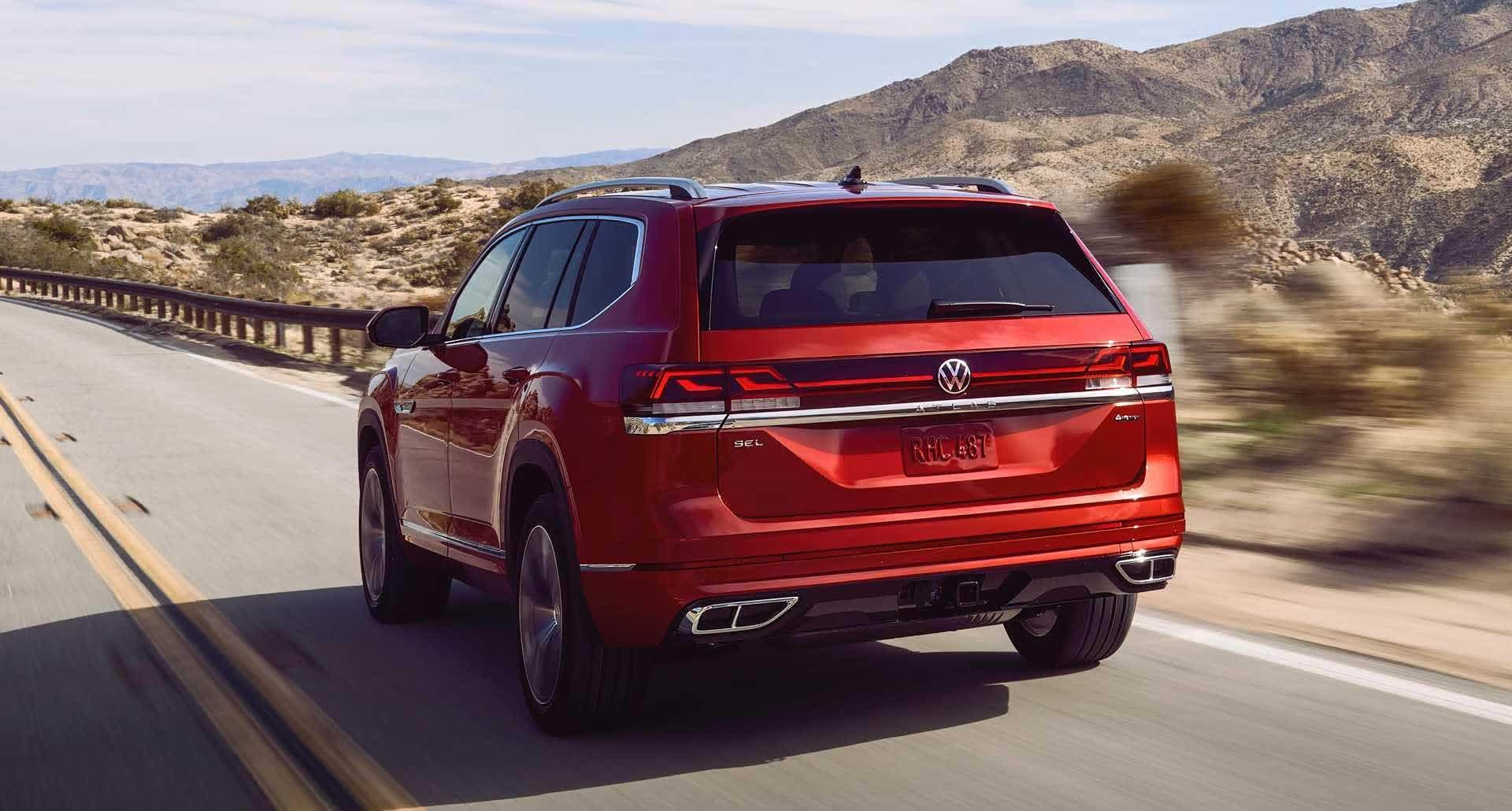 至于尾部,背面配有大尺寸车顶扰流板和尾灯条横跨行李箱盖。尾部的造型与前脸的前大灯遥相呼应,在视觉上显得更加的深邃。除最低配的以外,其余的都有发光的标志和发光的 LED灯。大众只公布了其R-Line旗舰版的官方图片,其特点是21英寸寸的合金车轮、 R标志以及四个镀铬的排气管等运动装饰。根据不同的车型,轮毂样式也有不同,从18至20英寸,其中 RLine运动版的最大规格为21英寸的铝合金轮毂。Atlas R- Line车型还配备了一个特殊的 R- Line标志,并在车身上加入了几个亮黑色装饰。