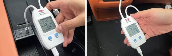 此外,我们对充电接口的电压和电流进行了测试,其中前排Type-C充电接口的电压为9.22V,电流为2.02A;后排Type-C充电接口的电压为9V,电流为2.83A。