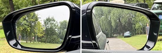 评测车左、右外后视镜均采用普通镜片,实测左外后视镜视野范围为31.2°;右外后视镜视野范围为22.7°,在测试过的同级别车型中均处于上游水平。