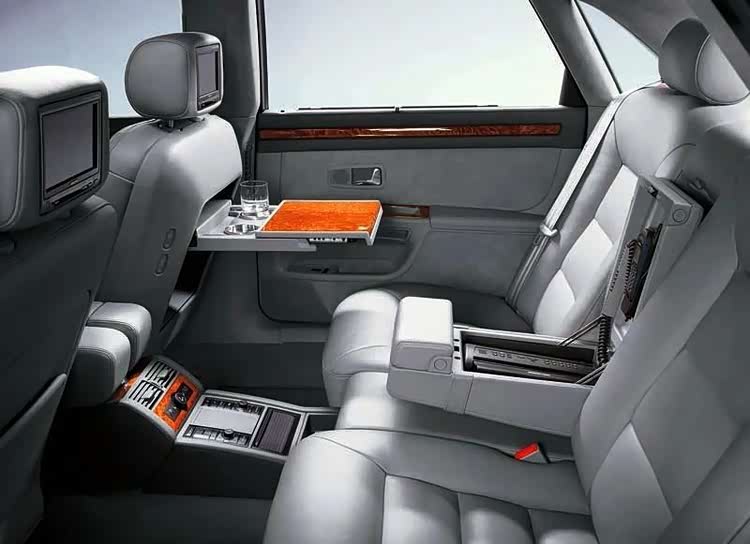 第一代奥迪A8官方提供的办公套件包括了冰箱、酒柜、带显示器的VHS播放器、折叠小桌板和电动窗帘。