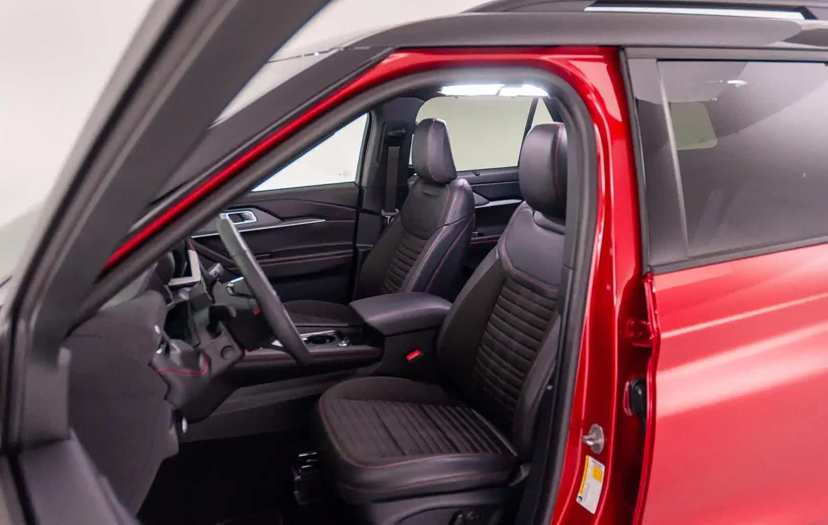 探险者最大的变化发生在内部。所有探索者现在都有一个非常宽的音箱,覆盖在织物包裹的仪表板上。顶部装饰采用Bang&Olufsen高级音响系统。每个探险者都配备了12.3英寸的数字仪表盘和13.2英寸的触摸屏信息娱乐系统。剩下的几个按钮包括音量旋钮和某些安全系统的控制,如四向危险和主动车道控制。温度调节控制的接口现在完全嵌入触摸屏中。
