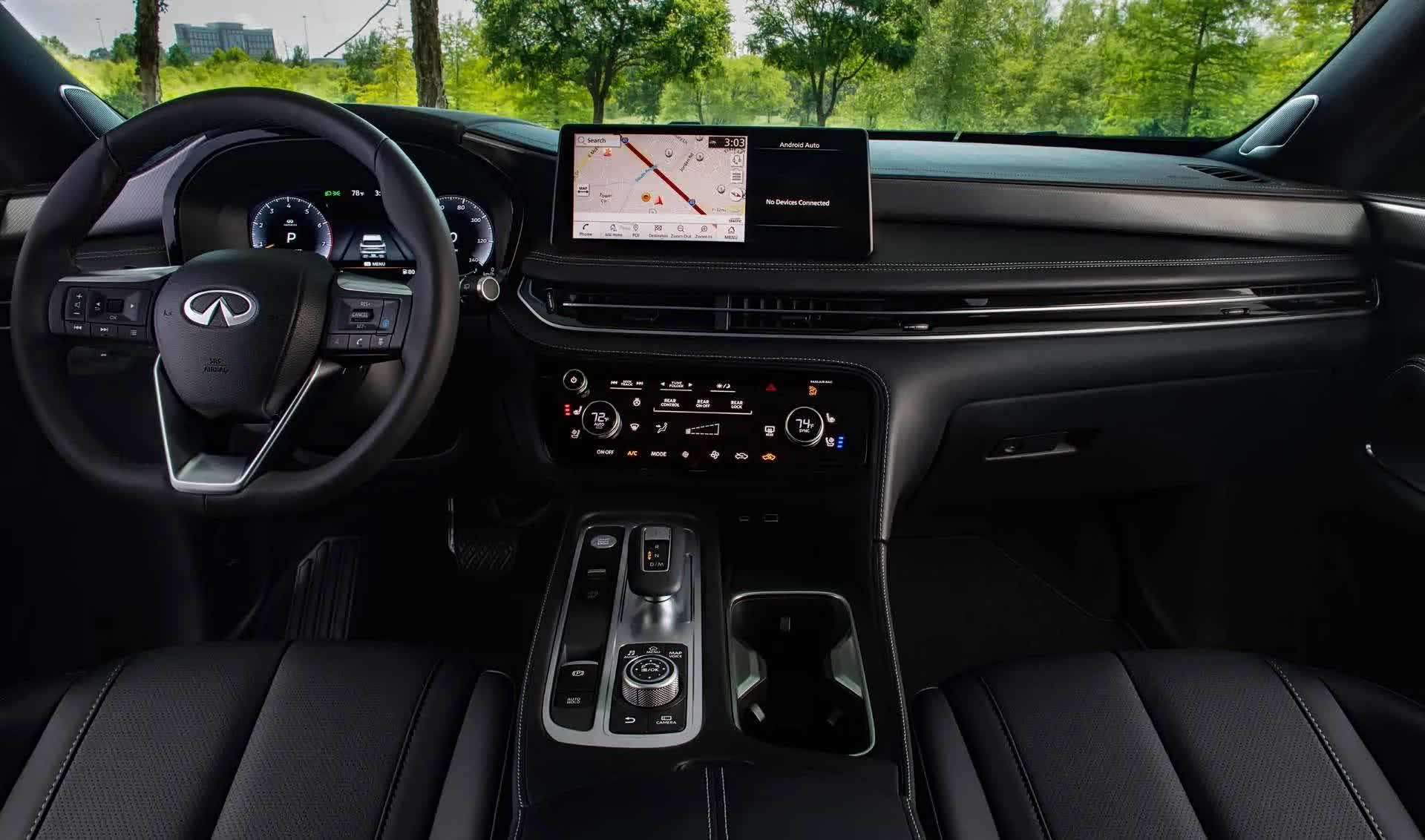 另外新QX60配备比较齐全。标准配置包括18英寸车轮、真皮装饰、加热前排座椅、加热方向盘、三区空调控制、12.3英寸信息娱乐大屏、9扬声器音响系统以及无线Apple CarPlay和Android Auto。标准配置还包括了各种电子驾驶员辅助功能,比如前后自动制动,以及盲点和车道偏离警告。