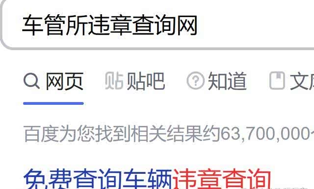 需要通过车辆违章查询网站,如交通违法查询网、车管所违章查询网等。线上查询方式如下,就以车管所违章查询网为例,首先在百度搜索引擎输入“车管所违章查询网”关键词,按照提示一步一步,就能查到。