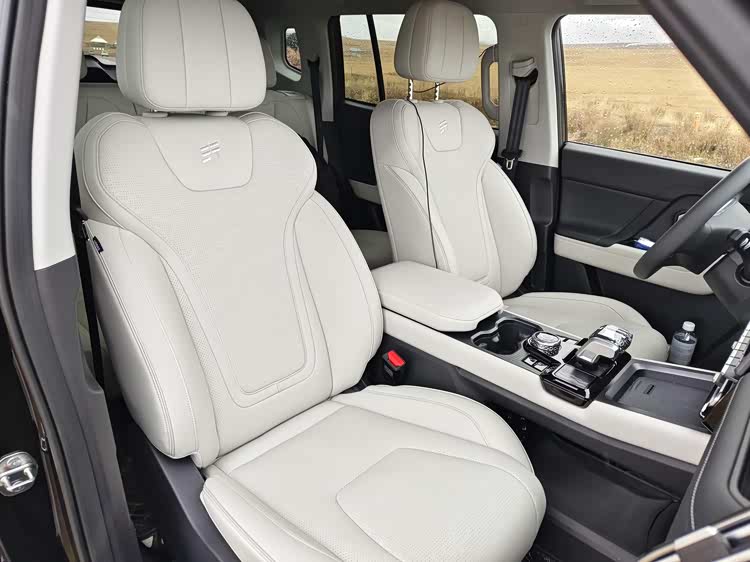 山海T1的前排座椅采用了9 层结构的人体工程学的设计,拥有着非常不错的支撑性与包裹性。座椅表面的覆盖材质采用了PU云肤革面料,没有添加任何的甲醛溶剂,3岁以下d额婴幼儿直接皮肤接触也不会有任何的问题,同时主驾还支持通风、加热和电动调节。
