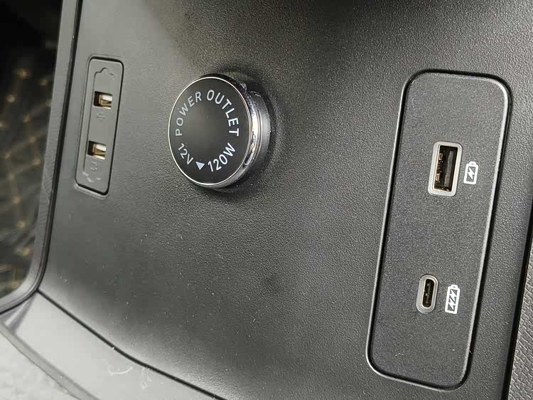 山海T1车内的充电口设置的也是非常的丰富,不仅前排有50W无线快充、60W Type-C 快充和18W Type-A慢充,后配也是配备了Type-CType-A的快慢充接口。