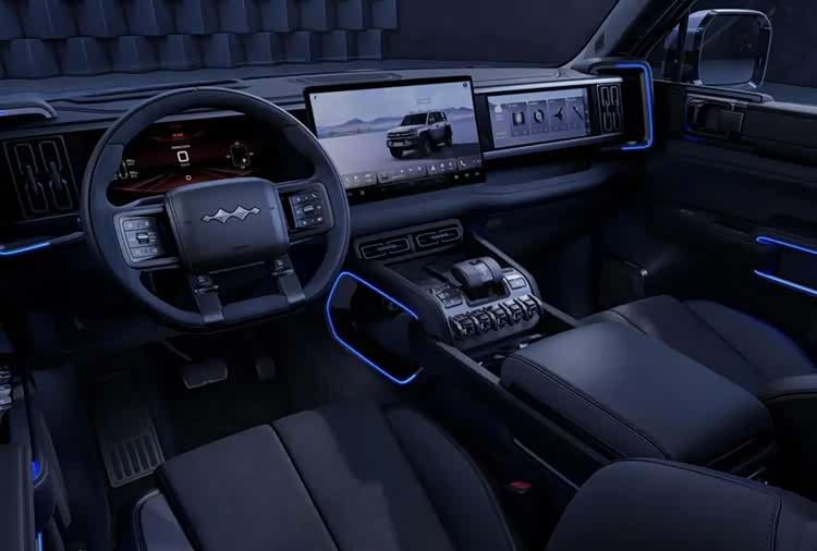 与车辆硬朗外观有点不同的是,豹5内饰设计更显科技感和豪华感。中控台上12.3英寸液晶仪表+15.6英寸悬浮式中控屏+12.3英寸副驾驶娱乐屏的设计特别抓人眼球。此外,车辆还用了电子换挡机构,车辆启动时,电子挡把缓缓升起,仪式感满满。