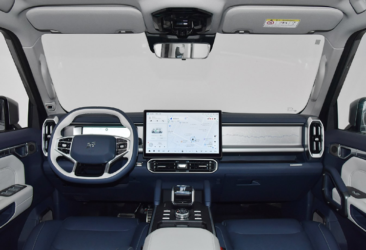 内饰方面,四驱版延续两驱版车型的内饰设计,新车内饰用色更大胆,采用双色的车身设计,装饰饰板的纹理展现出高级感。新车配备大尺寸仪表盘和15.6英寸的多媒体大屏,内置高通骁龙8155芯片,支持智能分区语音控制、多款App、远程车控、全景影像以及透明底盘等,新车还配备了前排睡眠头枕、车载香氛装置、SONY音响等。