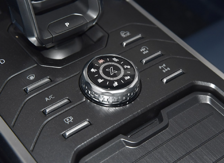 在变速器排挡后方,还保留了驾驶模式切换、蠕行模式、坦克转向、后桥电控牙嵌式差速锁等的切换按键。它拥有7+X的驾驶模式,支持E经济/N标准/S运动/雪地/泥地/沙地/岩石等7种驾驶模式,特设的“X模式”,能够智能识别路况,以保证最佳行驶状态。四驱系统,可以根据车辆动态实时分配前后轴扭矩。新车前后排座椅宽裕舒适,前排配备座椅加热、通风、按摩,后排座椅靠背放倒后,后备厢空间平整。
