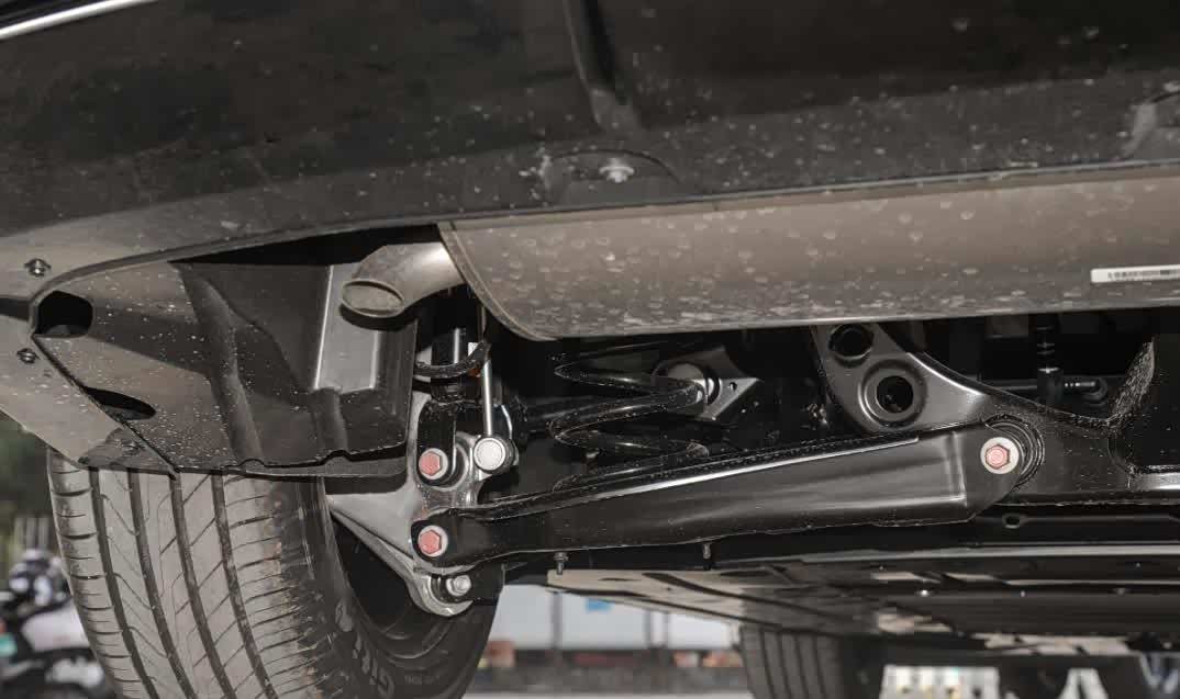 在底盘悬架方面,海豹DM-i的后悬挂采用了五连杆的结构,而且在试驾过程当中也能够感受到五连杆悬架带来的舒适性。例如在通过相对较大的起伏路面,以及带有减速带等路况时,尾部对于车身多余的晃动控制的比较不错,而且也能够更好的化解路面细碎的颠簸。不过,当你激烈驾驶这台车的时候,你会发现它的底盘悬挂并不能够带来太好的支撑性,而这也说明海豹DM-i的底盘调校更偏向于舒适性。