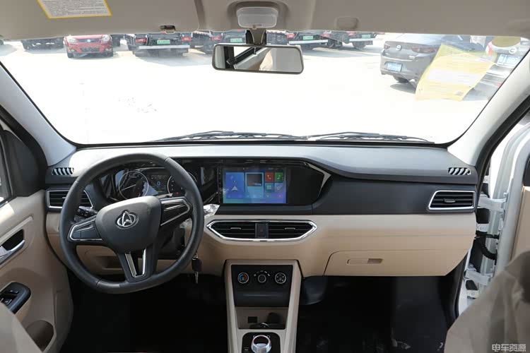 内饰上,长安跨越星V7 EV采用了乘用化的设计风格,黑色和卡其色双拼的设计、仪表盘和中控屏采用了连屏设计,旋钮式的换挡机构,显得非常有档次感。配置方面,9寸的中控屏,包含倒车影像、智能语音对话、听歌娱乐等功能,驾驶体验更佳。
