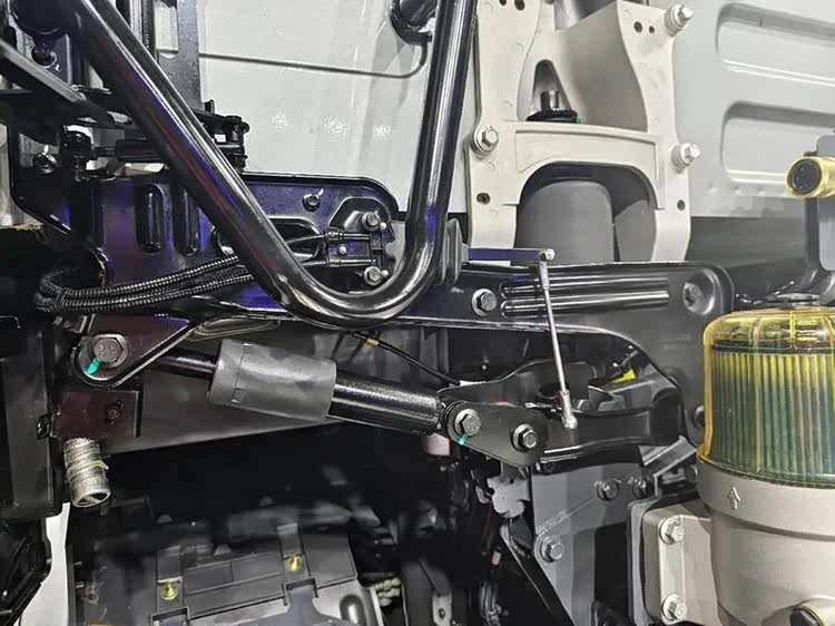 除了四点气囊减震,驾驶室左后方还设置了横向减震器,能够大幅优化驾驶室晃动,提升舒适性。