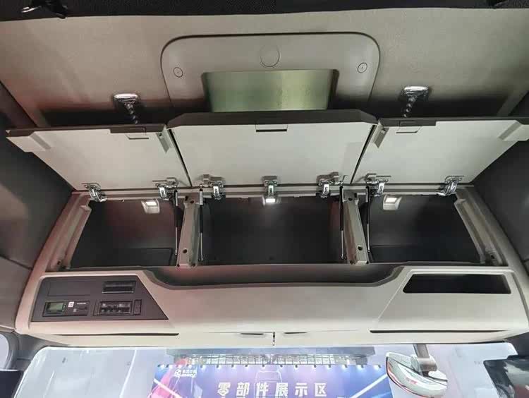 拍摄车副驾也配备了多功能气囊减震座椅,纯平地板驾驶室内高2.1m,拥有1550L储物空间。