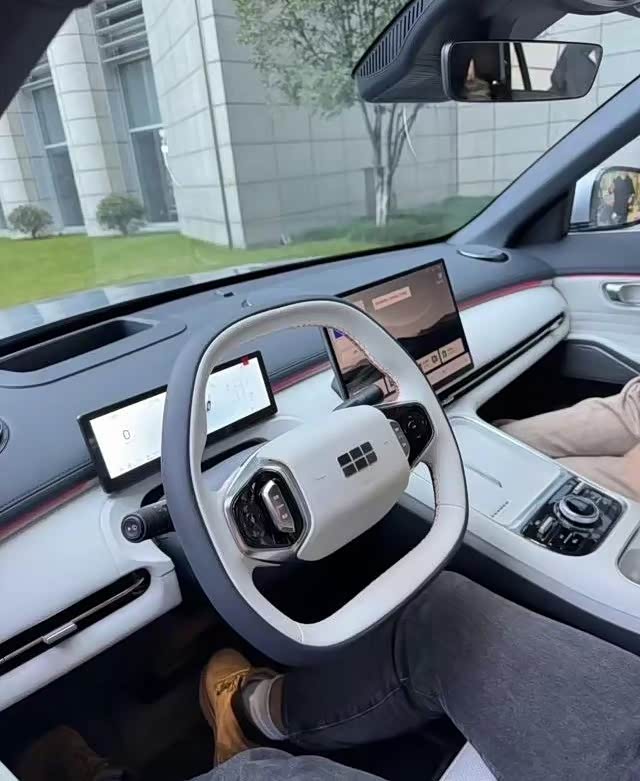 吉利银河星舰7的座舱秉承吉利银河家族化设计理念,搭载双色材质包覆的平底两辐式方向盘和电子怀挡,中央通道下层采用镂空处理。在此基础上,吉利银河星舰7的液晶仪表屏和中控屏均采用悬浮式布局,据悉将集成Flyme Auto车机系统。