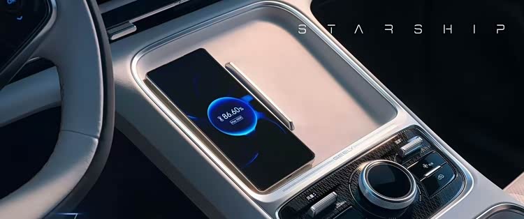 吉利银河星舰7还提供环境氛围灯、“三潭映月”悬浮式音响系统等功能配置。此外,该车中央通道功能区设置有控制旋钮和部分按键,前部的两个手机储物槽仅左侧集成手机无线充电功能,至于更多配置信息还有待官方进一步公布。