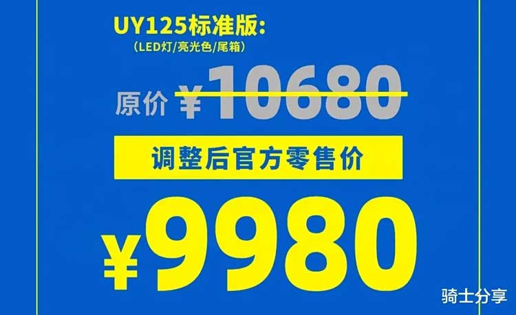 重磅消息!网红神车UY125官宣降价了,原价10680元的标准版,价格下调到了9980元,看来等等党又赢了。