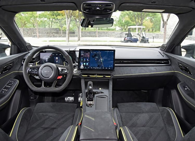 内饰方面,2025款领克03+同样延续了现款车型的设计风格,但在细节上进行了优化。新车提供了三幅式多功能方向盘、全液晶仪表盘、悬浮式中控屏以及电子档把等配置,使驾驶舱充满了科技感。同时,新车还采用了大面积翻毛皮材质进行包裹,并加入了黄色缝线工艺进行点缀,提升了内饰的质感和运动氛围。