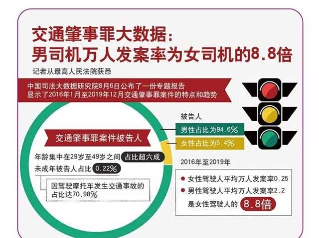 或许在大多人的认知里,女性驾驶员的事故发生率,要远高于男性。其实,并非如此,而是恰恰相反。根据中国司法大数据研究院所展示的报告来看,在2016~2019年期间,对于国内的交通肇事罪,男司机平均万人案发率为2.2,而对于女性司机平均万人案发率,仅为为0.25。相比之下,男司机万人案发率为女司机的8.8倍之多。
