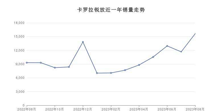 卡罗拉锐放在2023年8月份的销量为15633辆,同比增长68.15%,环比增长34.04%,在10-15万油电混动车中销量位列第5。相比于7月,卡罗拉锐放的销量增加了3970辆。