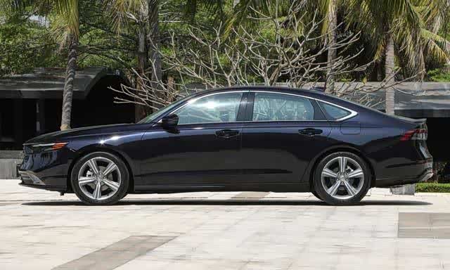 从车身侧面来看,与上一代雅阁一样,低配版车型提供的轮毂造型确实一般,对比高配车型给到的枪灰色五辐式运动轮圈,确实差点意思,当然我个人还是比较钟意十代半雅阁高配版的银白双拼轮圈。另外从线条设计上来看,十一代雅阁车侧的线条明显比老款简约时尚,有点偏商务的感觉。