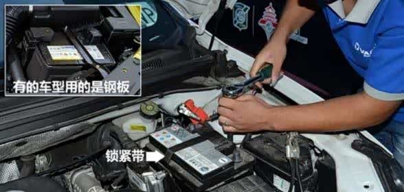 将正极搭电线与电池正极相连,负极线则与电池负极相接。