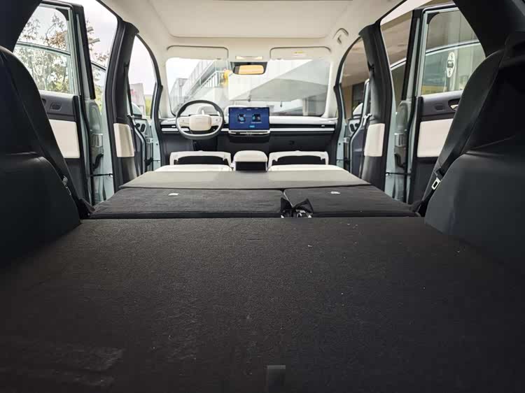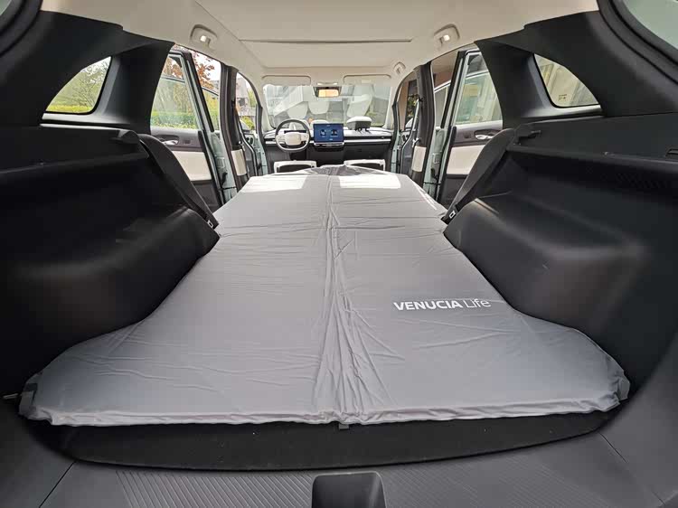 不过,VX6有一个其他同级别对手,甚至更重量的对手,都没有的功能,那就是前后排纯平放倒,整体车厢,注意这里说的整体是,从方向盘开始到后尾门,一直都是纯平的,直接形成了一张2.5米x1.5米的大床。
