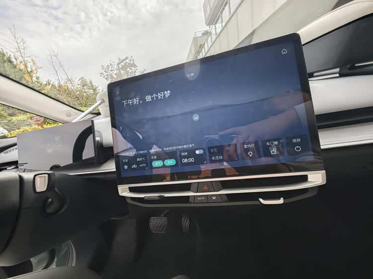 内饰上,仪表和车机尺寸都不小,有了8155芯片和16G运存的支持,流畅度还是非常不错的。但在控制上,基本上只能依靠触屏操作,实体按钮的缺失,有些遗憾。