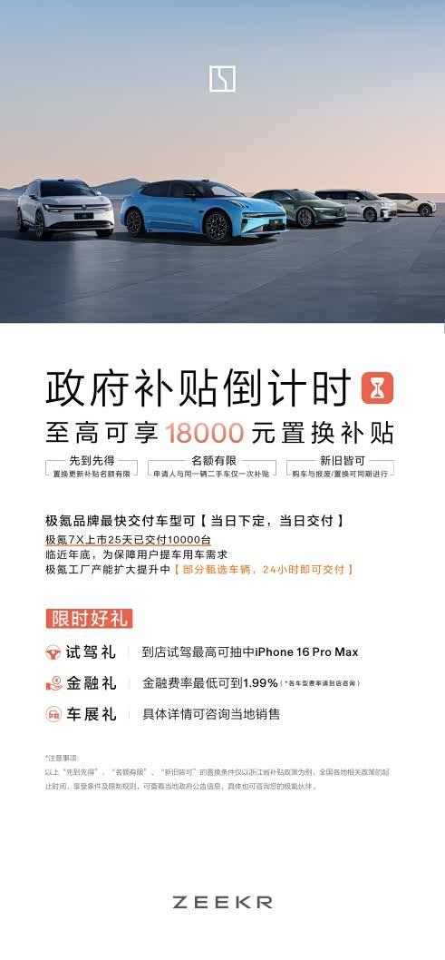 综上所述,极氪品牌的此次购车补贴政策不仅力度空前,而且覆盖车型广泛、申请流程简便、交付速度快。对于正在考虑购车的消费者来说,这无疑是一个不容错过的购车良机。