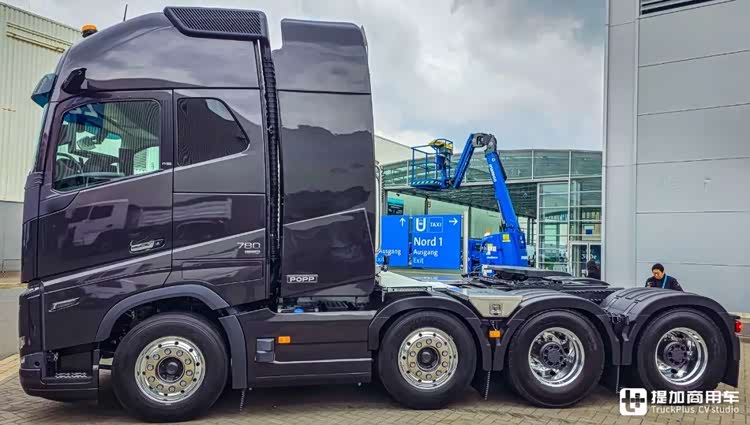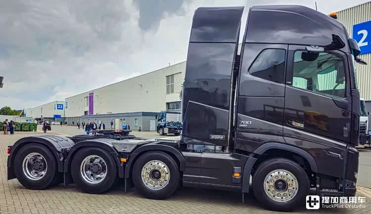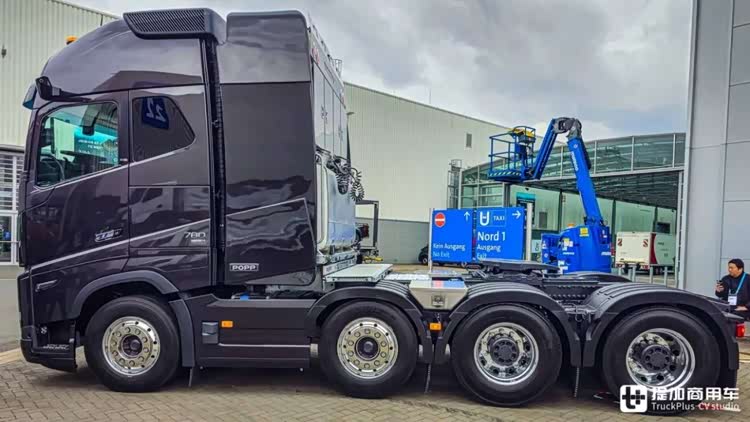 在沃尔沃卡车的室内展台处,搭载同款780匹马力发动机的FH 16 Aero系列车型作为C位。那么,为什么没有人用它来打造大件牵引车呢?原因很简单:FH 16 Aero系列车型成本更高,并且其带来的空气阻力优化主要在高速行驶时才能体现。对于大件牵引车这种常常大油门中低速行驶的车辆而言,附加的成本并不能获得较好的收益,带来的油耗降低也微乎其微。并且,标准版FH 16久经考验、长期运用,受到青睐也是理所应当了。