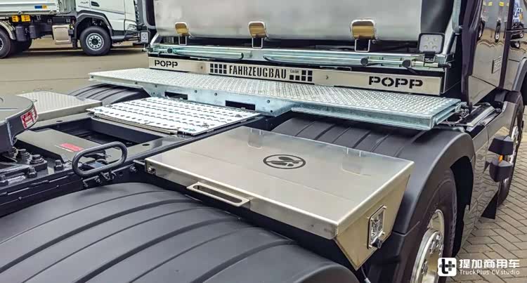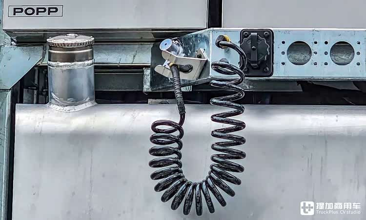 镀铬挡板将刹车储气筒等附件隐藏于其中,并且集成后向射灯及倒车摄像头,易用性更强