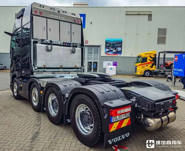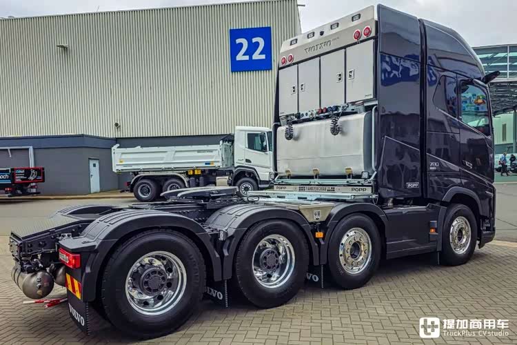 这台FH 16大件牵引车由沃尔沃卡车的合作伙伴:POPP进行改装,而POPP也是沃尔沃及雷诺卡车的改装大师,长期参与在大件牵引车产品的研发及生产制造之中。本车的大件包主体呈两层堆叠,分别为超大油箱及储物箱,实用性较强。