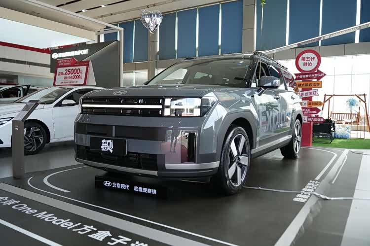 这一点看展厅内的实车就能发现,车衣均是318国道、自驾越野路线的车衣,整车无论探索家车型还是鉴赏家车型,第五代胜达均上车的是第三代2.0T发动机+8AT的动力总成,纯内燃机车型。