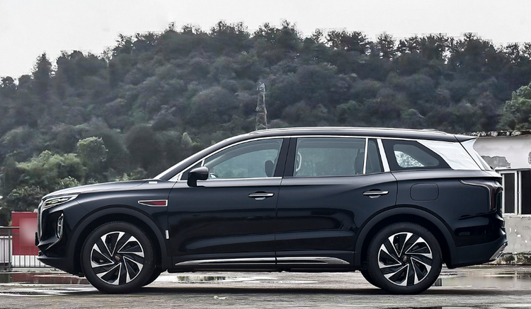 从侧面看,这款车的腰线设计颇为独特。红旗HS7 PHEV车身侧面采用了上下双腰线设计,上腰线在后门处向上扬起,远处看上去很像飘扬的旗帜,可以很好的提升车辆的动感气质。
