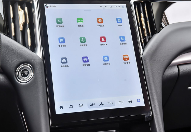 红旗HS7 PHEV采用的是“T”字型的中央对称布局,这是红旗汽车上常见的设计,能营造出不错的环抱感,很能彰显车主的尊贵。