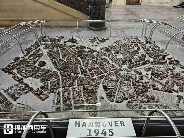 进去之后里面摆着汉诺威这座城市从19世纪至今的发展图,19世纪的时候工业革命风格显著,但是到了1945年二战的时候,基本上就是夷为平地,后面借助着西德的力量快速重建。