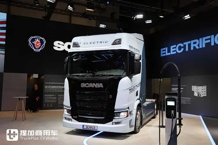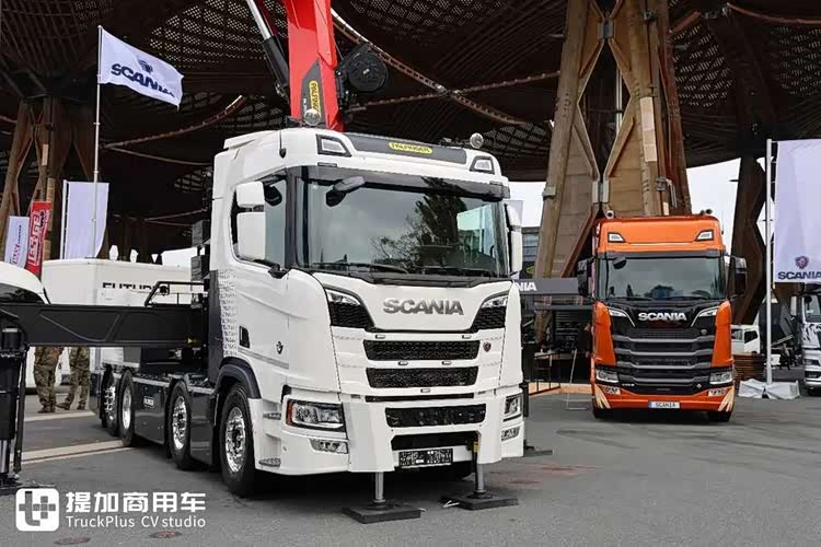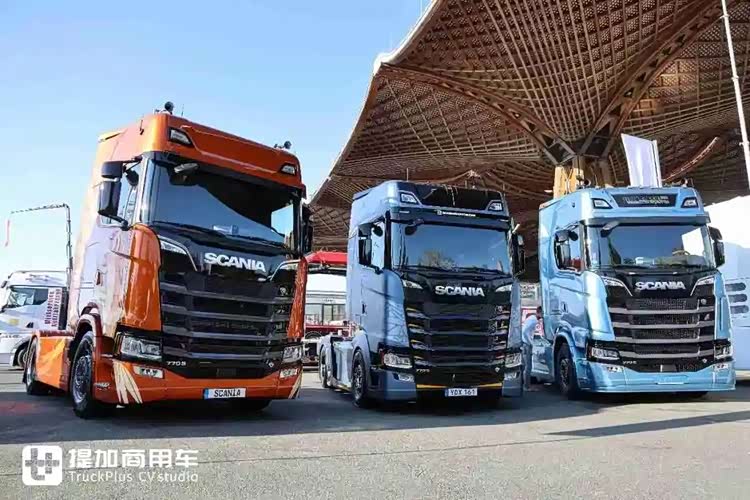 进入展馆内的斯堪尼亚展区,里面燃油车就剩一个V8和一个Super了,V8的马力也由之前的650升级到了660,然后早期的730变成了770马力。